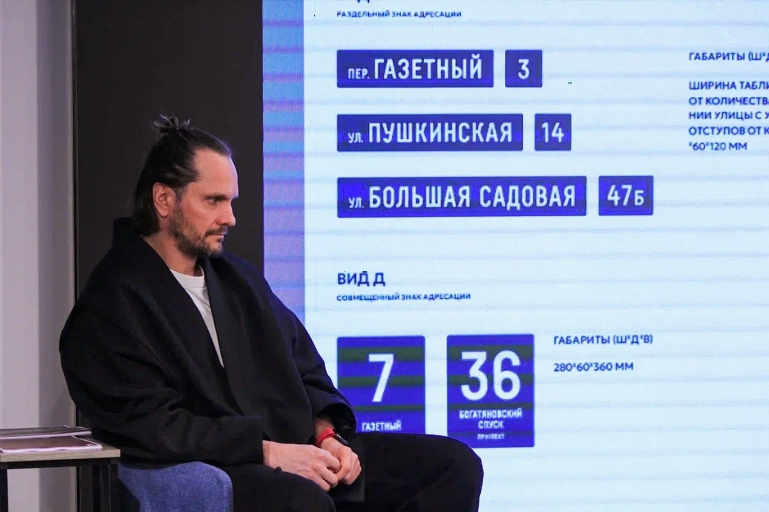 Встреча прошла при участии графического дизайнера, арт-директора и сооснователя студии TTlab, преподавателя Школы дизайна НИУ ВШЭ, Константина Травина, который подробно рассказал о современных навигационных конструкциях, требованиях к типологии, расположению информации на таких конструкциях, а также о формировании аншлагов на фасадах и ограждениях.